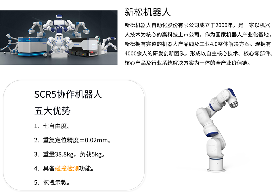 机械装备制造业在我国具有重要的地位,随着市场和政府对机械装备产品的质量和安全的提高和重视,机械装备制造行业需要确保产品的质量标准和规范。在科技发展的大背景下,新的检测和测量技术将不断涌现,为机械装备检测和测量行业提供更多的机遇和发展空间。中国制造业正处于数字化转型的过程中,包括在机械装备制造领域的应用。数字化技术的发展为机械装备的检测和测量提供了更多的解决方案。而引用新松的SCR5机器人能够帮助机械装备制造行业提供高精度、稳定性、灵活性、自动化、高效率等。