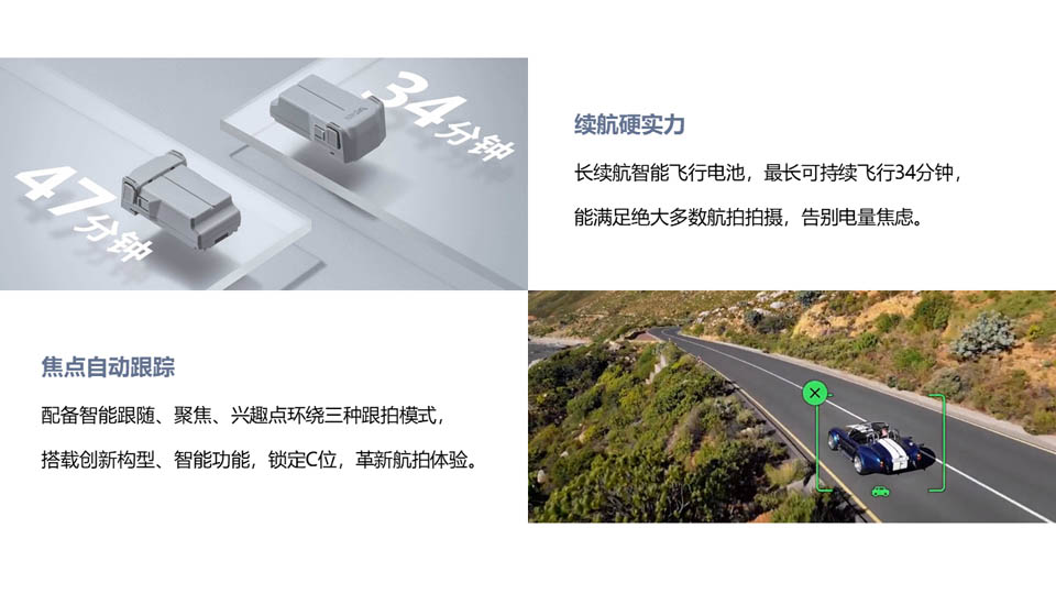 25 公里(搭载长续航智能飞行电池,无风环境 43.2 公里/小时匀速飞行)