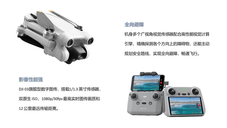 大疆DJI Mini 3 Pro是大疆的小飞机无人机,延续Mini系列轻巧便携的特点,重量仅249g,搭载 1/1.3 英寸传感器,影像性能大跃升,最长续航时间34分钟,兼具避障功能,带来全新航拍体验。