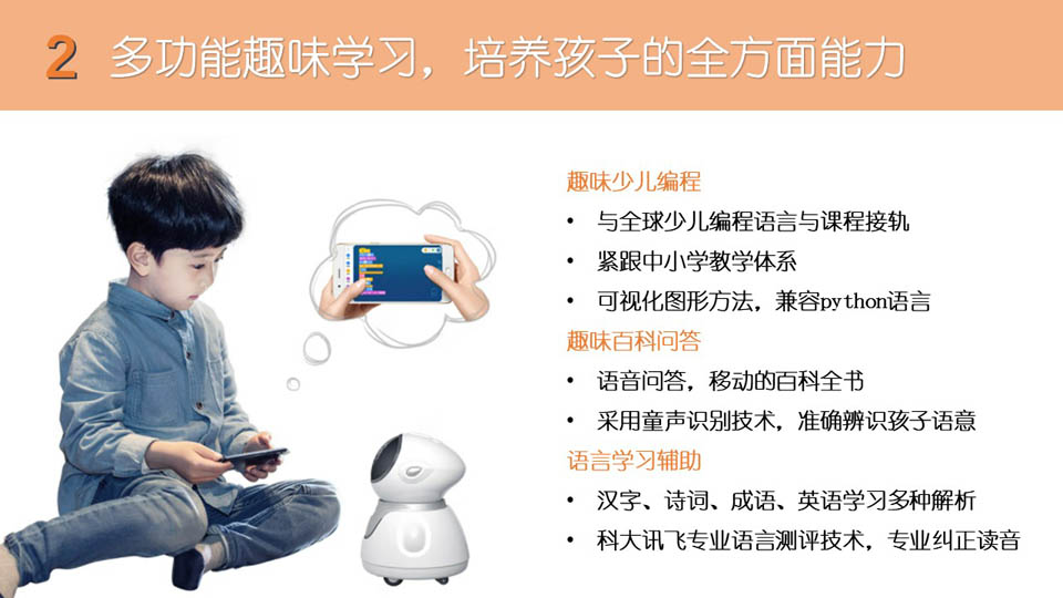 阿尔法蛋A10,具备360度声源定位、小学可视化编程、英语发音测评、自动避障避坠、远程遥控等多种功能。阿尔法蛋以“用AI启迪未来新人类”为使命,构建了阿尔法蛋专属内容体系,为每个孩子提供人工智能学习助手,有趣高效的学习方式,提高其学习兴趣和效率,为每个孩子提供人工智能小助手。