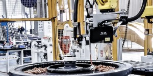 采用Mech-Eye Pro S Enhanced工业级3D相机视觉系统精准定位回转轴承,并自动生成涂胶轨迹和注黄油轨迹引导机器人进行涂胶和注黄油作业。