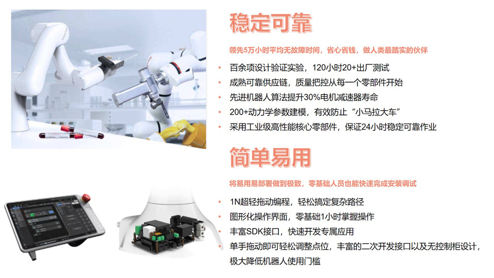 BFT机器人提供的珞石柔性协作机器人ROKAE xMate 系列珞石xMateSR3-C-H,外观轻盈灵动,低成本高性价比,负载3kg,自重约13.8kg,工作半径706mm,自由度6,重复定位精度±0.02 mm。采用极致轻量化机身设计,配置多重安全防护技术具备超灵敏力感知,简单易用操作无门槛,最快半年可收回投资成本,是智能化场景升级改造中的理想之选。