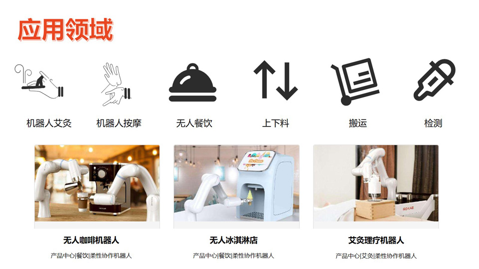 珞石SR4是珞石新一代柔性协作机器人,外观轻盈灵动,低成本高性价比,负载4kg,自重约16.5kg,工作半径919mm,自由度6,重复定位精度可达±0.05mm。使用珞石柔性协作机器人xMateSR4搭配艾灸仪,通过视觉识别、精准运动控制等实现自动艾灸治疗,替代传统的艾灸理疗方式。同时合理运用人工智能、结合红外诊断,肌骨定位系统,提供个性化、精准的艾灸康养方案。搭载高精度力控系统,模拟专家进行刮痧和推拿动作。