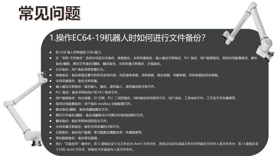 随着工业生产的不断发展,自动化水平的提高已成为必然趋势,许多传统的人工检测环节亟待实现自动化、智能化,机械臂搭载机器视觉系统的协作机器人能够对产品配件进行表面缺陷尺寸检测,极大地提高了检测效率、精确率,为工业的大尺寸工业部件质量检测提供了有效的解决方案。艾利特机器人EC64-19,专门针对大尺寸部件的视觉检测和摄影摄像应用而生,柔性机械臂搭配机器视觉检测系统,可以实现高精度、高速度的工业大尺寸部件自动化检测。