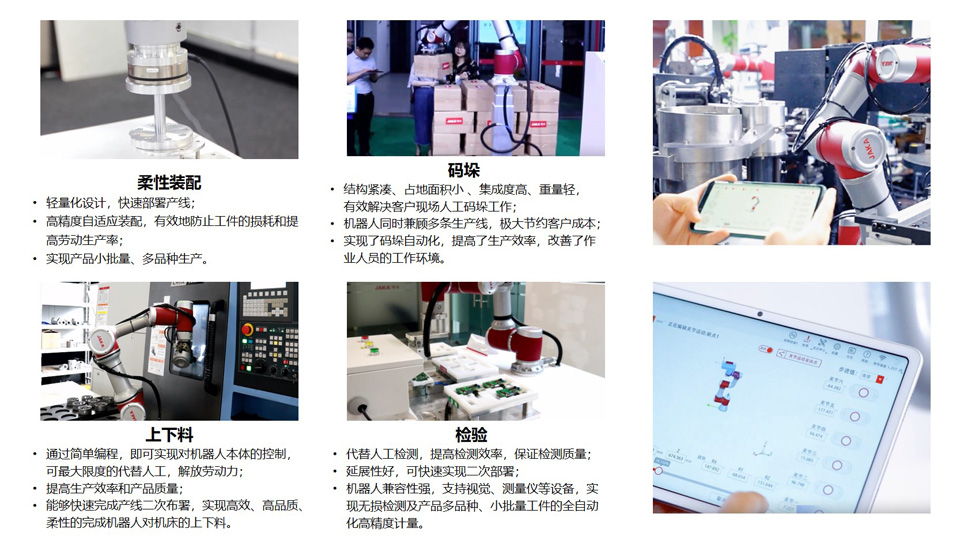 BFT机器人提供的节卡 Ai7有效荷载7kg、自重22kg、工作半径819mm、6自由度。采用S³(Smart,Simple,Small)的产品设计原则,极致创新,融合了无线示教、图形化编程、视觉安全防护等机器人技术,革新了人与机器人的交互方式,提升了人机协作交互的安全性,大大降低了机器人的使用门槛。