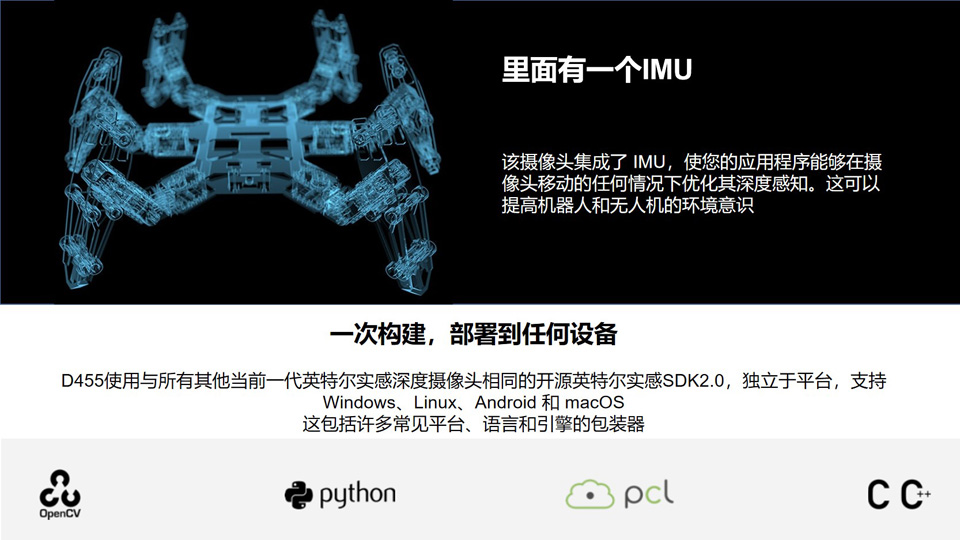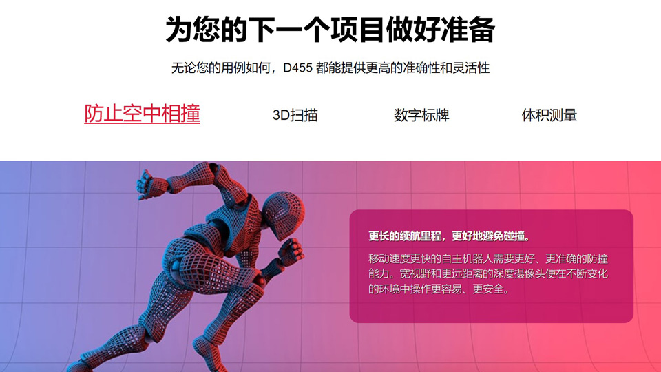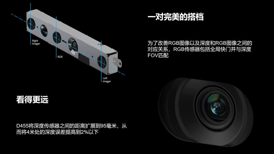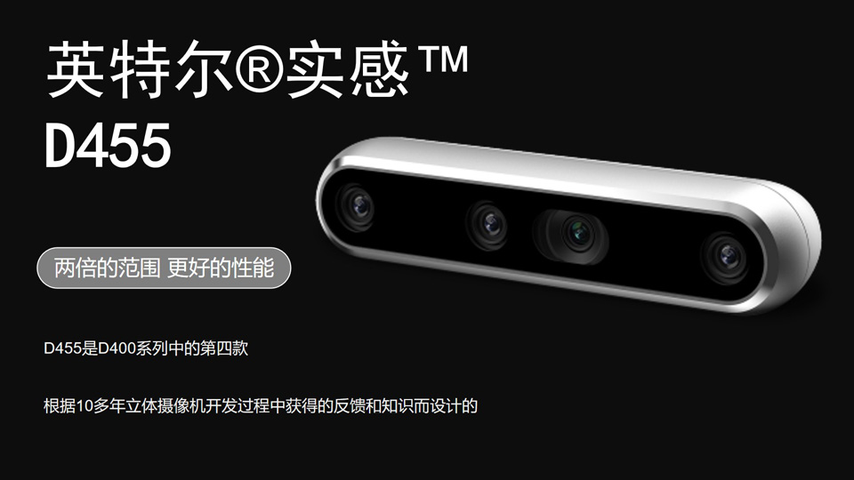 BFT机器人提供的英特尔实感D455是D400系列中的第四款,根据10多年立体摄像机开发过程中获得的反馈和知识而设计,具有两倍的范围和更好的性能。