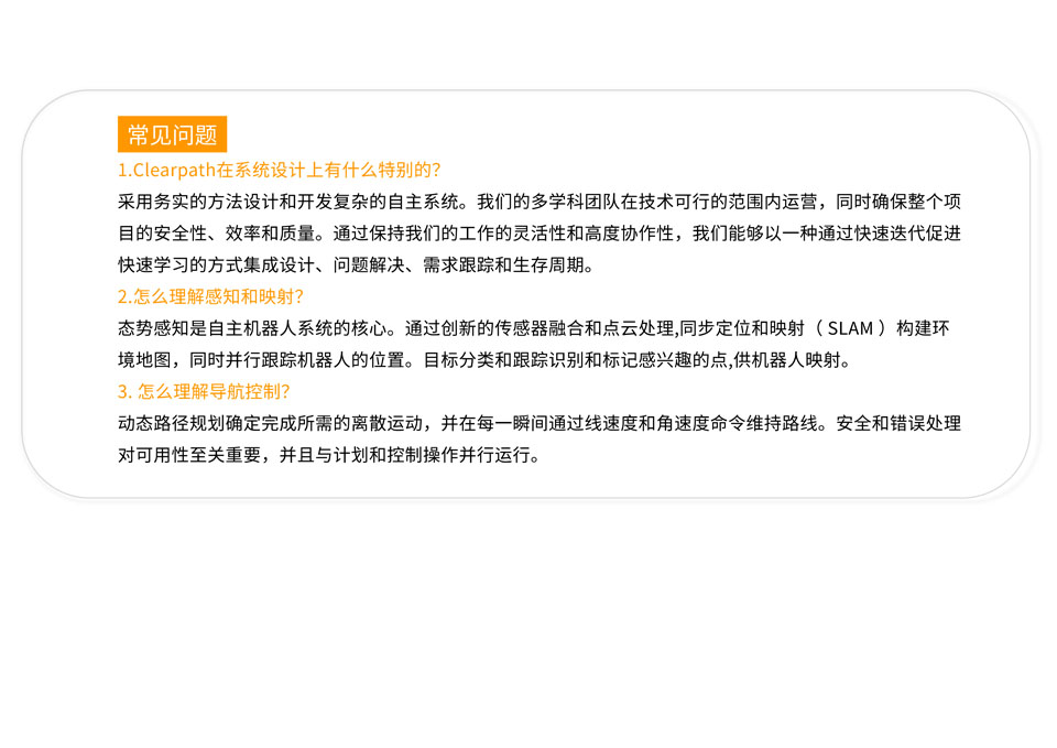 Clearpath的机器人解决方案采用Velodyne最先进的激光雷达技术,该技术拥有业界领先的分辨率、量程和视场角。Velodyne传感器可创建360°实时环境地图,使机器人能够探测并避开障碍物,以实现自动驾驶安全导航。