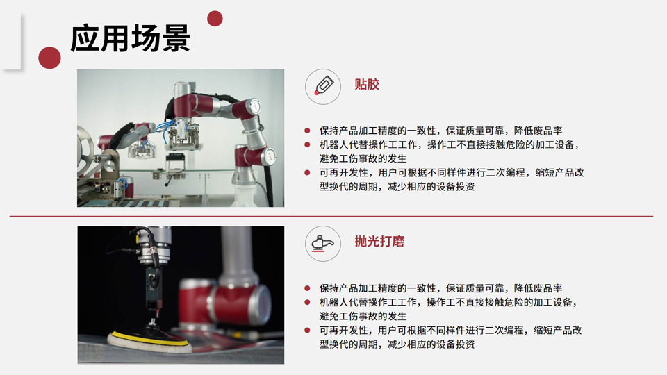 BFT机器人提供的节卡 S5拥有0安装、0配置、奇异点保护功能特点,以内嵌力传感器功能共融,实现机器人末端多维力感知,满足工业自动化升级进程中对感知技术高适应、快响应、高精度等高层次需求。