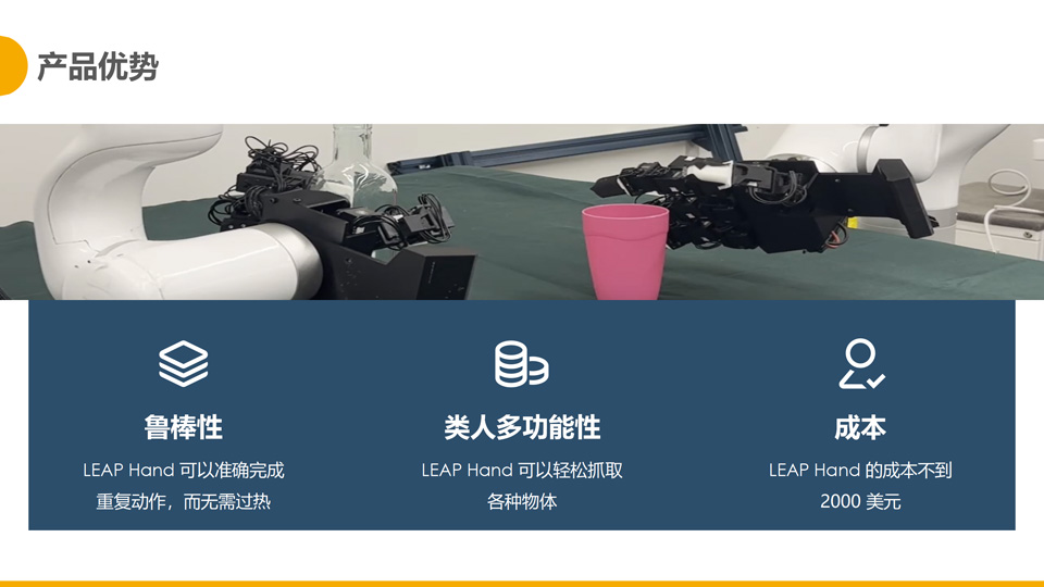 当前全球服务机器人执行终端市场年增速达18.7%,但传统产品受限于高成本(如Allegro Hand单价超8万美元)与复杂控制逻辑,难以普及。Leaphand以1/8成本实现性能超越,并通过搭载XC330/XL330舵机,构建了“科研级精度+工业级稳定性”的创新方案,解决了上述痛点。