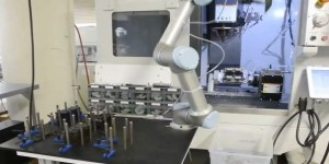 选择了Robotiq 2-Finger Adaptive Gripper和Wrist Camera来配对Universal Robots UR5进行机器管理过程。两个零件由机器人定位在夹具上,然后由机器焊接。 机器人手腕相机非常灵活,能够在广阔的视野内定位部件。任何时候有一个新锁组装,你可以教一个新零件,并改变生产。