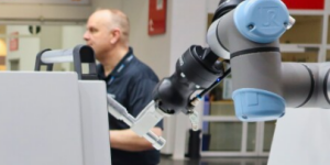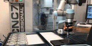 该公司团队使用了通用机器人UR10协作机器人来维护重要的数控机床。为了方便快捷地完成这一任务,他们选择了Robotiq数控机器维护工具套件。这套工具装配了一台UR5e,并配备Robotiq公司经UR+认证的腕式摄像机和Hand-E机械手。 现在通过这台UR5e将成品零件从车床上卸下,放入塑料托盘,并运到外面等待后处理。得益于UR5e的帮助,呼吸机组件的产量迅速提升。