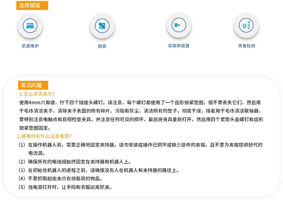 Hand-E自适应夹持器用于精准插入零件,防护等级为IP67,可定制指尖,是Fusion OEM机器维护操作的完美匹配。将抓手直接连接到机器人的手腕上,获得位置和力的反馈。