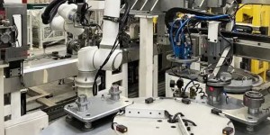 在各种设备之间,协作机器人承接了转运、取料、放料等简单、枯燥、重复的工作。该产线能够根据制造任务或生产环境的变化迅速调整,以适用于多品种、小批量的生产特点。