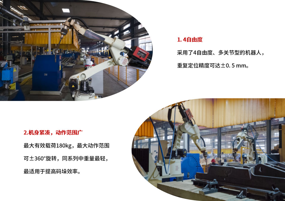 新型高速有力的码垛机器人 拥有杰出搬运水平的高速码垛机器人。 可对应食品、药品、印刷品等各行业的多种类少量化的生产需求。 同系列中重量最轻,最适用于提高码垛效率。