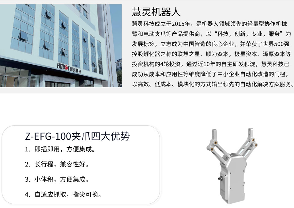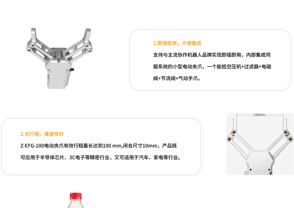 Z-EFG-100有效行程长,可达90mm,夹持力可调,行程可调。支持485通讯的控制方式,控制器内置。