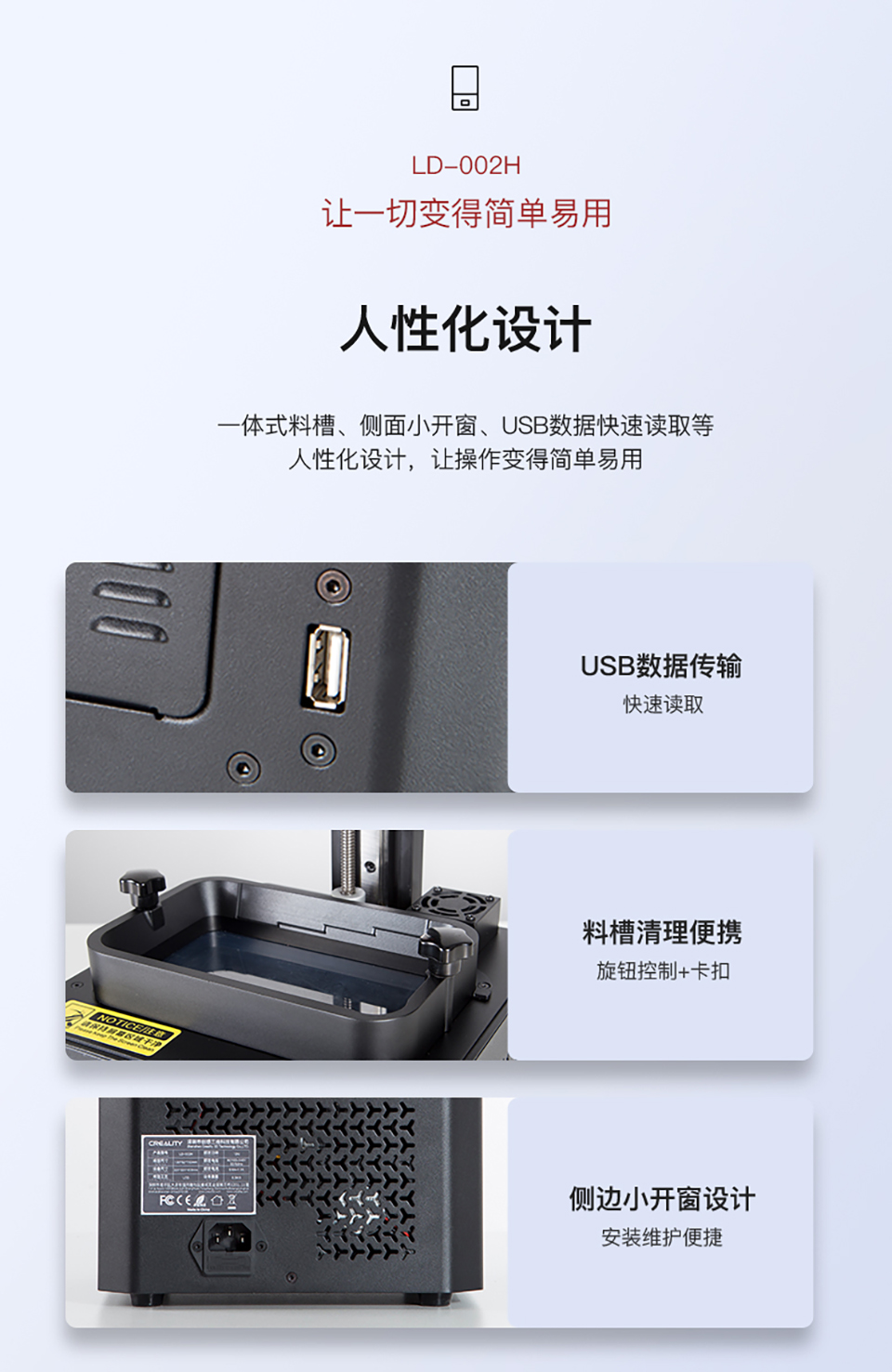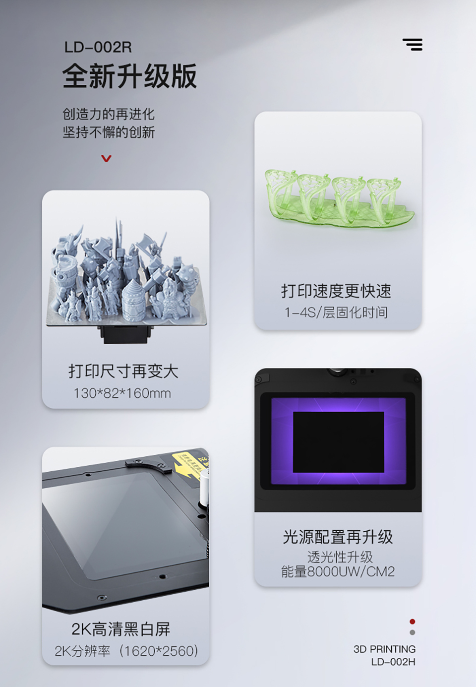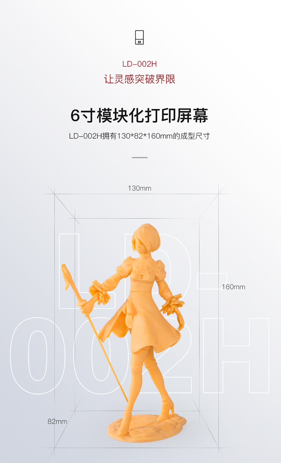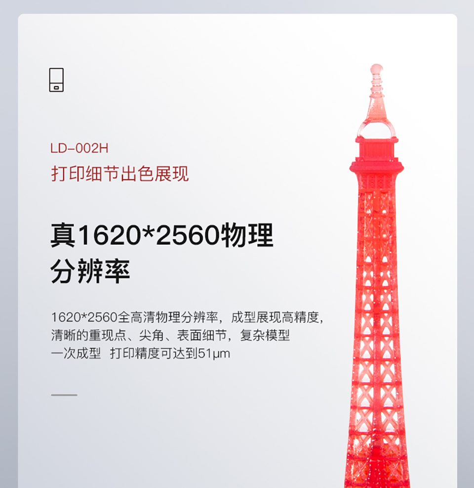 LD-002H全新升级版,打印精度可达51微米,6寸模块化打印屏幕,集科技、智慧、高效于一身,让灵感突破极限。