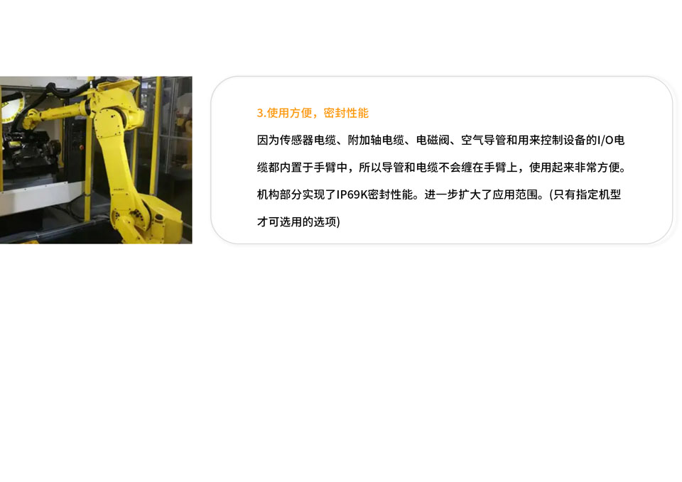 LR Mate 200iD/7L是一款大小和人的手臂相近的迷你机器人,可达半径911mm,手腕可搬运质量为7kg,轻量的机构部分,能够容易地把它安装在加工机械内部或者进行顶吊安装。