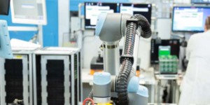 采用多台UR5机器人助力台湾电子公司延长设备寿命,减少重复性劳损。 四台UR5机器人负责三个独立的过程控制站,用以进行激光打标、PCB板切割和SPD自动烧录操作。