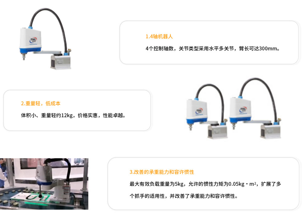 小型 SCARA 机器人 THL 系列,臂长为 300mm。