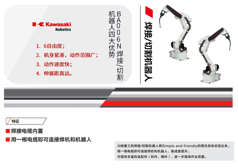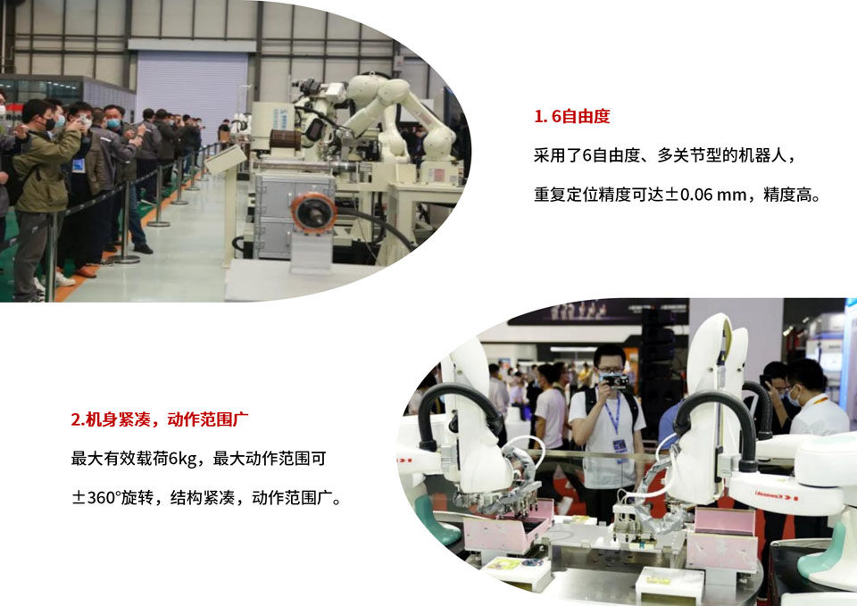 BA006N机器人机身紧凑,动作范围广,最大有效载荷6kg,最大动作范围可±360°旋转,结构紧凑,动作范围广。