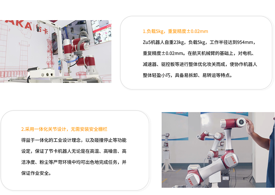 BFT机器人一站式机器人工业互联网平台提供的节卡ZU5协作机器人小巧轻便:重复定位精度 ±0.02mm,负载5kg,工作半径达到954mm; 灵活性高:快速部署,能够节省员工工作时间,优化整体生产率; 适应性强:满足轻量化的作业需求,如上下料、测试、装配等。