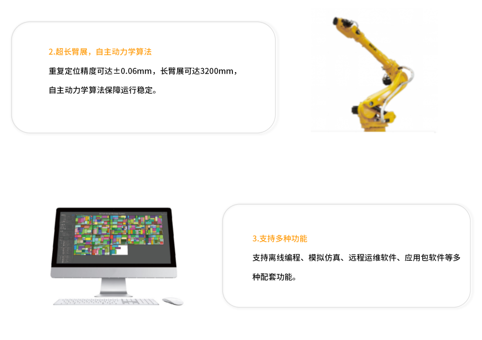 埃斯顿大负载系列产品广泛应用于光伏、锂电、家电、陶瓷、建材家居、汽车零部、物流等行业。此系列在负载能力和运动范围具有全面的产品组合,具有优异性能、高灵活性、多种结构形式等特点。并支持多种应用软件包、离线编程、模拟仿真、远程运维软件配套功能。