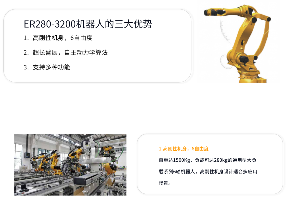 埃斯顿大负载系列产品广泛应用于光伏、锂电、家电、陶瓷、建材家居、汽车零部、物流等行业。此系列在负载能力和运动范围具有全面的产品组合,具有优异性能、高灵活性、多种结构形式等特点。并支持多种应用软件包、离线编程、模拟仿真、远程运维软件配套功能。