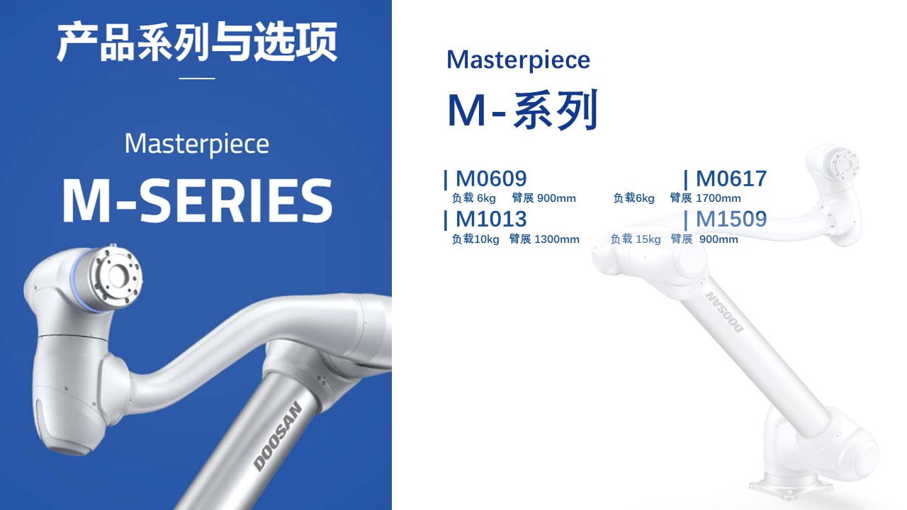BFT机器人一站式机器人工业互联网平台提供的斗山M1509协作机器人的有效载荷为15kg,可达范围为900mm,重复精度为0.03mm,确保客户安全,较强控制力,轻松处理复杂工作,容易安装。