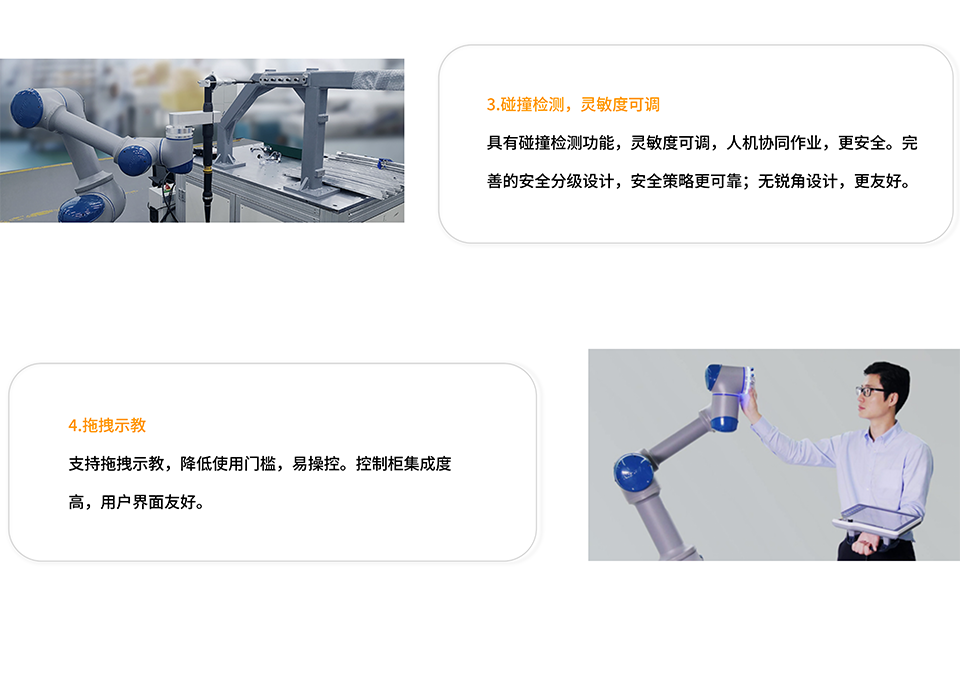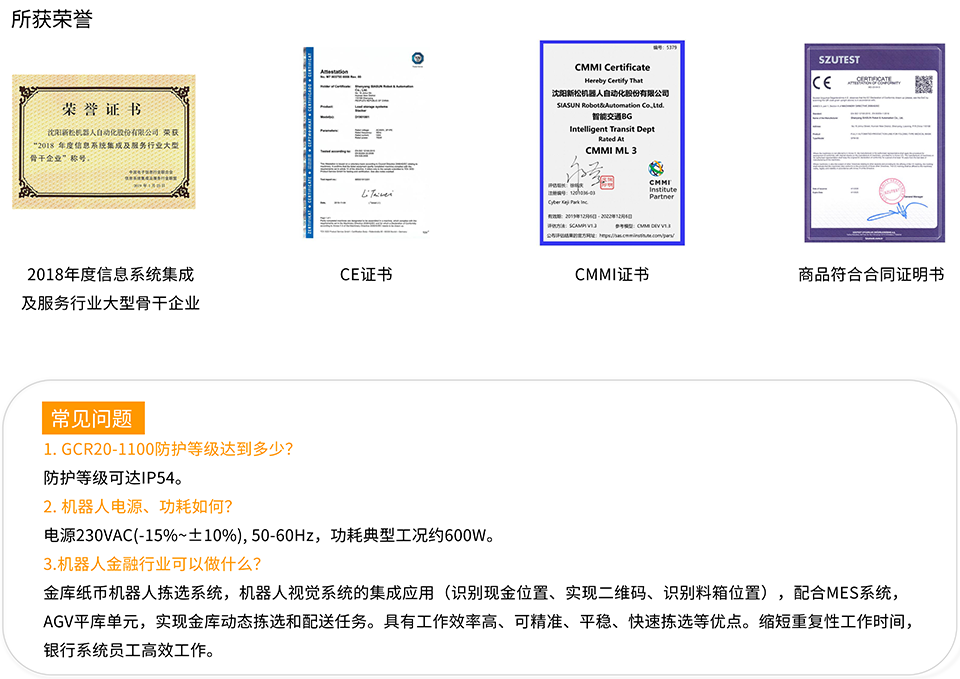 BFT机器人一站式机器人工业互联网平台提供的新松GCR20-1100协作机器人有效负载达到20KG的协作机器人,重复定位精度为±0.05mm,在搭载模组较重、场地环境不适宜进行大规模改动的装配场景中,凭借20kg的大负载可以游刃有余的进行工作。